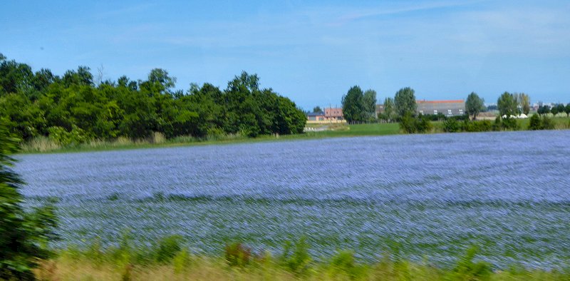 We komen langs veel vlasvelden.