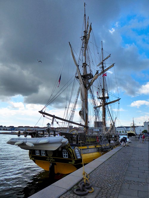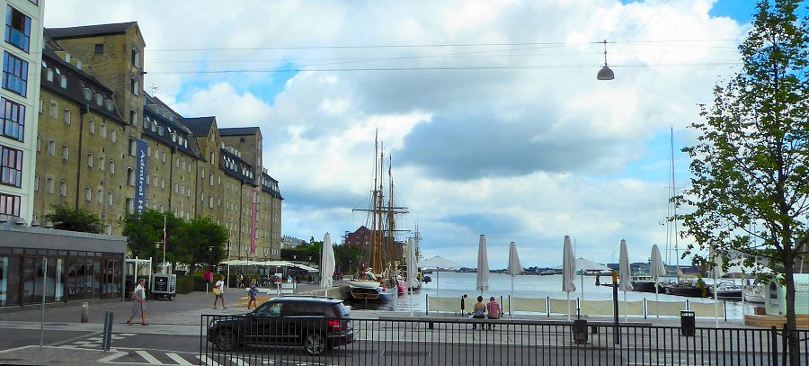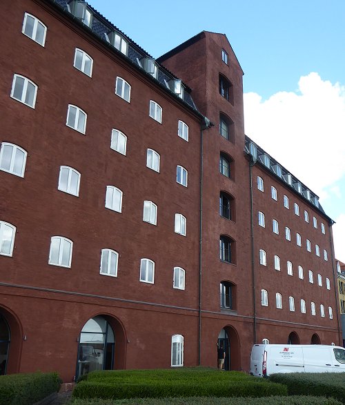 We lopen naar de bus op de Toldbodgade. We komen langs oude pakhuizen. Ze zijn verbouwd tot flats.