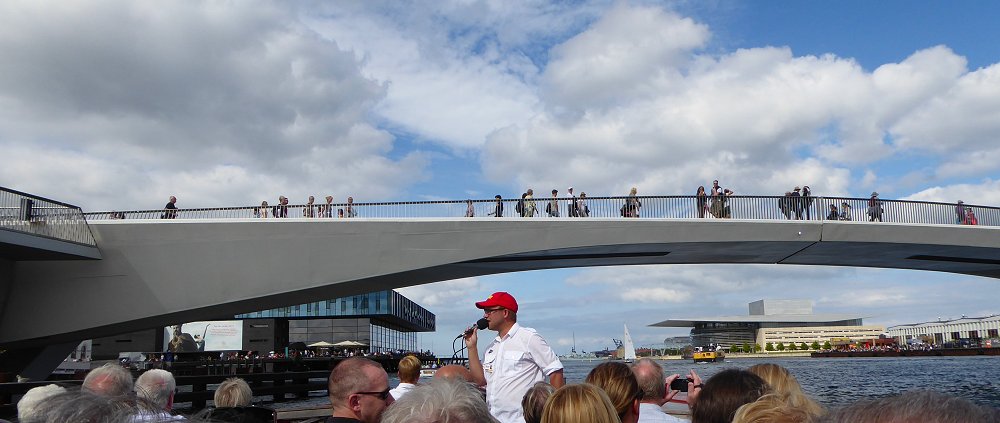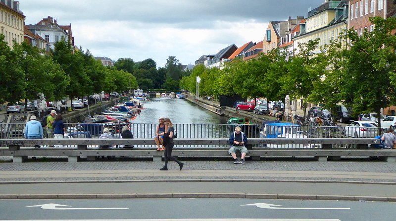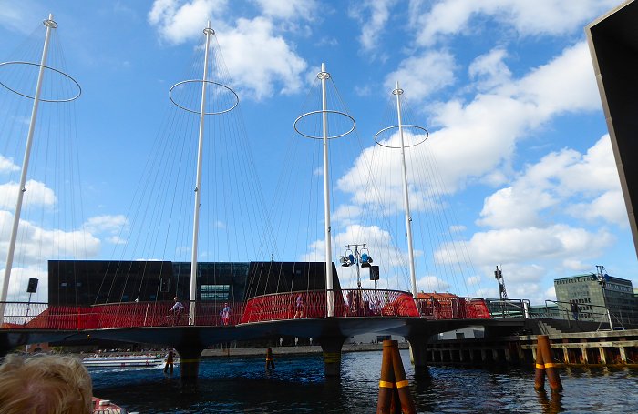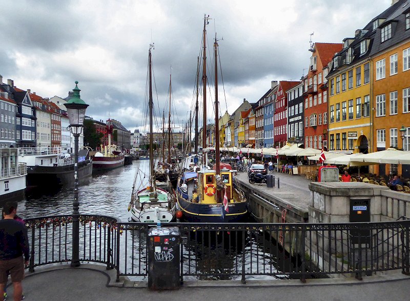 rijden over de Nyhavnsbroen en kijken op de Nyhavn |