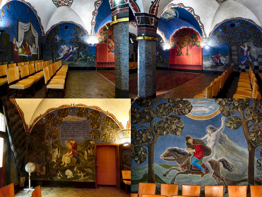rechts in de hal van het Stadhuis is een klein museum van Jens Olsen. Er staat onder meer een wereldklok tentoongesteld. |
