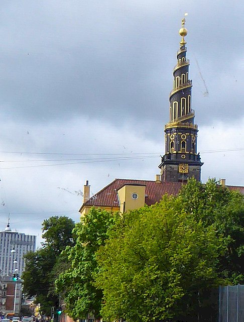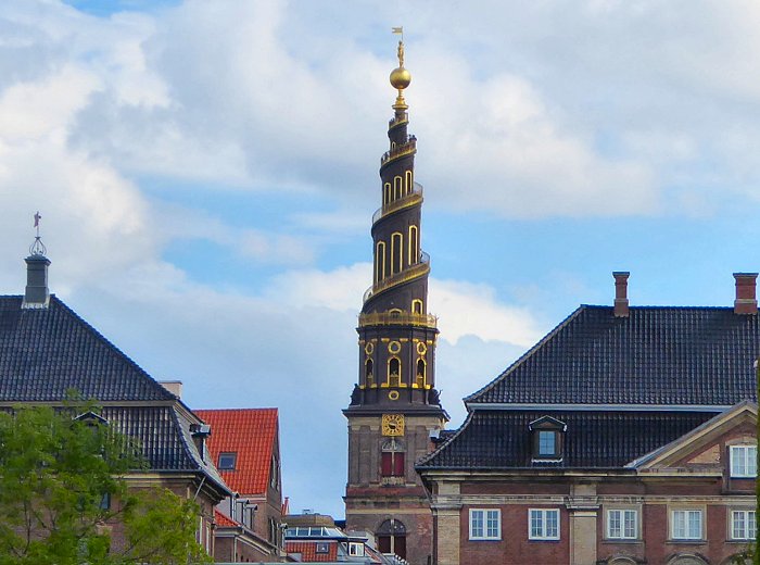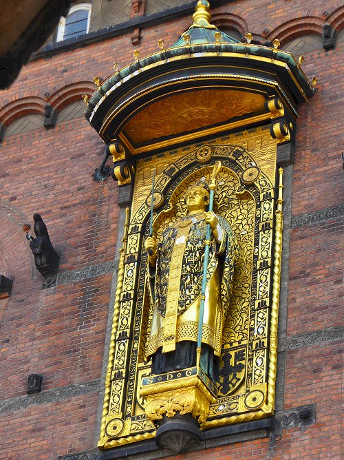 een gouden standbeeld van Absalon, de stichter van Kopenhagen. Boven Absalon een