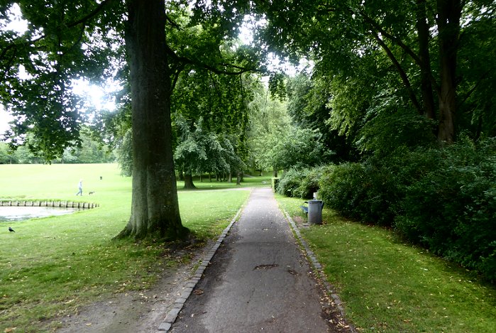 We lopen vanaf het museum over een voetpad naar het park en vandaar 700 m door naar de kathedraal. Die ligt bovenop een heuvel. Het eerste stuk van de wandeling is gelukkig nog vlak.