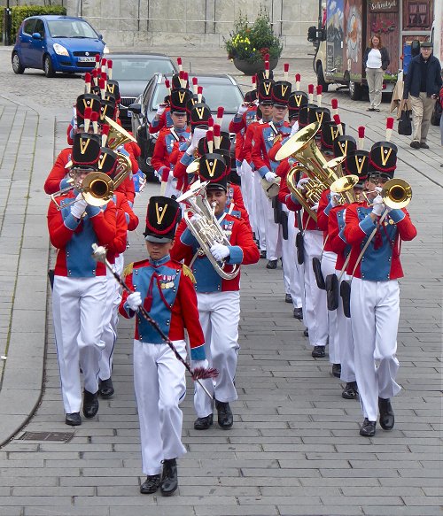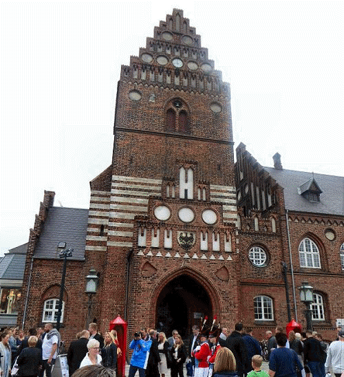 Op het stadsplein -Stændertorvet- wordt een kleine groente- en bloemen- en plantenmarkt gehouden; de harmonie stapt er driftig rond en in het historisch museum Sankt Laurentius wordt een receptie gehouden waarvan de gasten liever buiten staan. Dat doen trouwens ook de mannen van de beeldengroep.