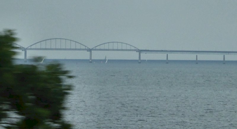 19 km lange brug tussen Rødby en Puttgarden: de Fehmarnbeltverbinding. In juni