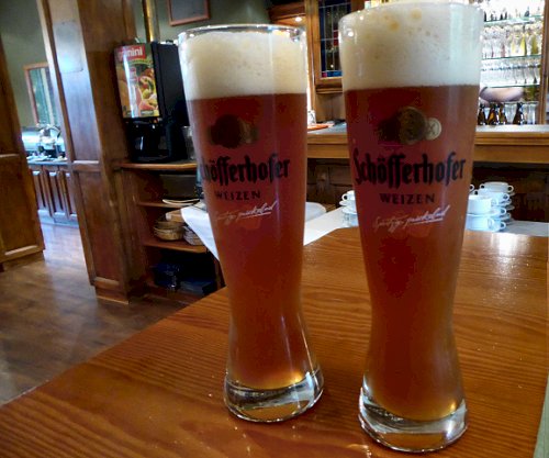 Het diner is om 19:00 uur. Daarvoor nemen we in de bar een Weizenbier.