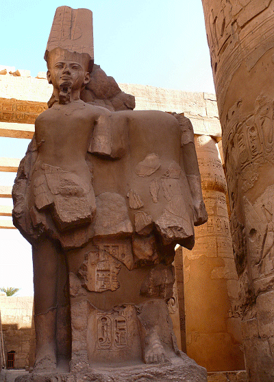 Voor de hypostyle zaal staat een dubbelbeeld. We kunnen er niet achter komen wie het betreft.