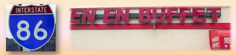 De Interstate 86 brengt ons in Corning. Daar wacht ons bij En En Buffet een uitgebreid Chinees buffet voor de prijs van slechts $ 12,-. Onbeperkt eten met soep vooraf en ijs na. Goed geregeld Hans!