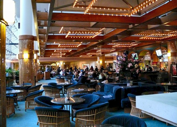 gezamenlijk een borrel in de ruimte vóór de bar. Om gezellig bij elkaar te
