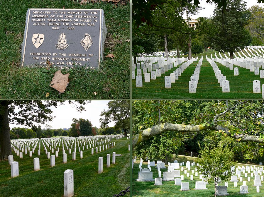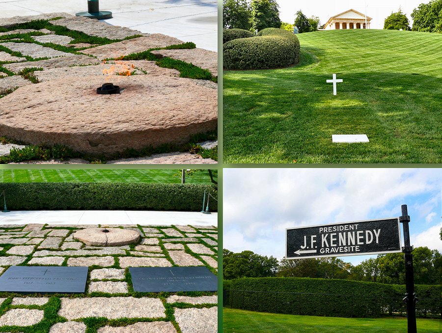 Het hart van de 252 ha grote begraafplaats is de Tomb of the Unknowns, het graf van de onbekende soldaten, waarmee de duizenden worden geëerd die nooit zijn geïdentificeerd. Het is voor ons even te ver weg. Op het graf van John F. Kennedy brandt een eeuwige vlam, ontstoken door zijn vrouw op de dag van zijn begrafenis in december 1963. Zij ligt samen met hun zoontje Patrick en een ongeboren, naamloze dochter naast de oud-president begraven. Uiterste stilte moet in acht worden genomen. Degene die wat zegt, krijgt het aan de stok met een toezichthouder. Vlakbij John F. Kennedy ligt zijn broer Robert F. Kennedy begraven. Het sobere graf heeft slechts een wit kruis en een naambordje. Sinds kort hebben John en Robert gezelschap van hun broer Ed. Edward M. heeft eenzelfde sobere graf als Robert F.