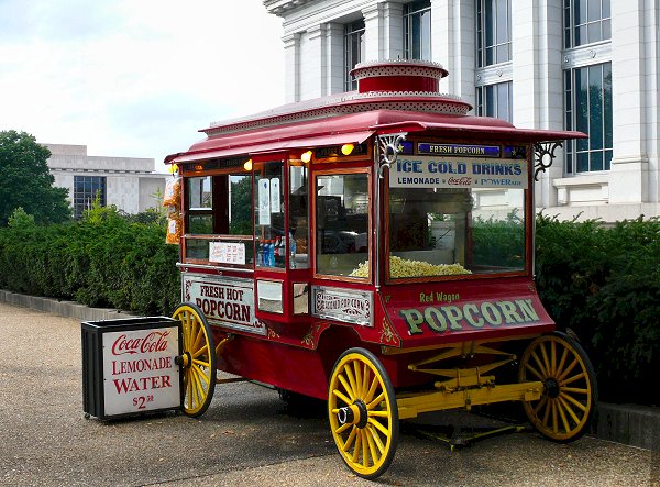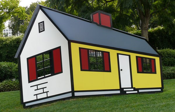 Via de Gallery of Art Sculpture Garden gaan we -langs een popcornkarretje- naar het National Museum of American History. In de Sculpture Garden staat 19e en 20e-eeuwse kunst. Onder andere optical illusion art van Roy Lichtenstein: een 3-dimensionaal huisje, van welke kant je het ook bekijkt.