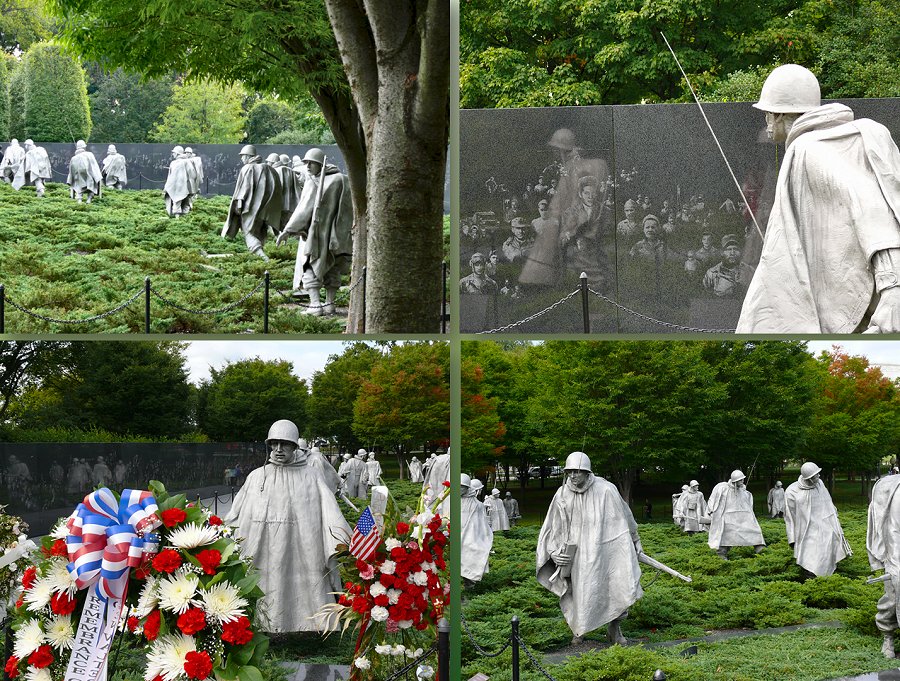 Vlak ernaast ligt het Korean War Veterans Memorial. Het monument is aangelegd in de vorm van een driehoek die een cirkel kruist. Binnen de driehoek staan 19 roestvrij stalen beelden. Het zijn soldaten, van meer dan 2 m hoog, die een squad op patrouille voorstellen, gekleed in hun volle uitrusting, verspreid tussen stroken graniet en jeneverbesstruiken, die het ruwe Koreaanse terrein voorstellen. Ten noorden van de beelden ligt een pad, dat een zijde van de driehoek vormt. Daar achter, in het zuiden, strekt zich over een lengte van 50 m, een zwart granieten muur uit. In deze muur zijn fotografische beelden gezandstraald die soldaten, uitrusting en mensen die betrokken waren bij de oorlog uitbeelden. Dit vormt de tweede zijde.