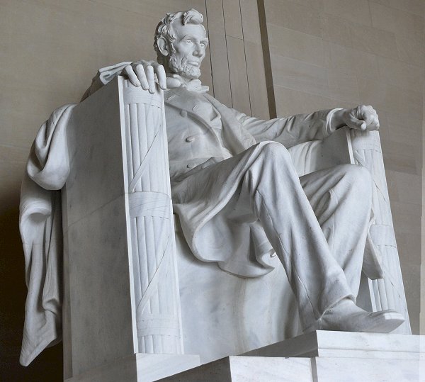 Binnen in het Memorial staat een groot standbeeld van Lincoln. Lincoln kijkt, met een ontspannen hand en een gebalde vuist om de verschillende kanten van zijn persoonlijkheid aan te tonen, uit over de lengte van The Mall.