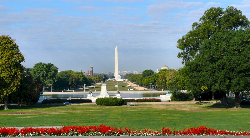 Als we Washington naderen, zien we direct al het bijna 170 m hoge Washington Monument en de koepel van het Capitool.