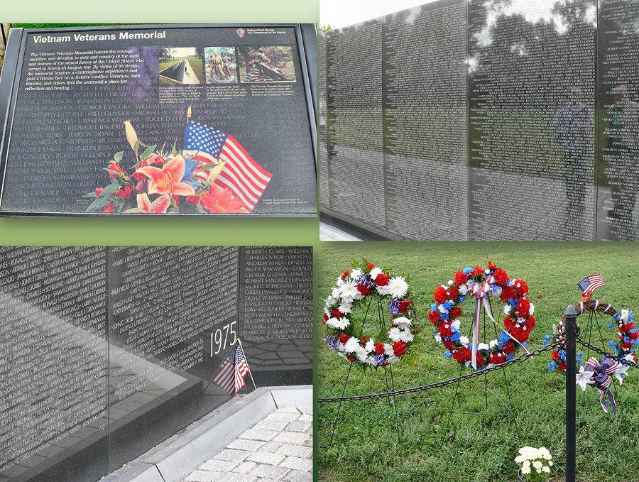De Vietnam Veterans Memorial Wall. Dat is het bekendste deel van het monument, ook wel The Wall genoemd. Het bestaat uit twee 75 m lange zwarte muren die onder een hoek van 125º zijn geplaatst, de een wijzend naar het Lincoln Memorial en de ander naar het Washington Monument. Op de muren staan alle namen van de gesneuvelde en vermiste soldaten tijdens de Vietnamoorlog. In totaal zijn dat er zo’n 58.000.