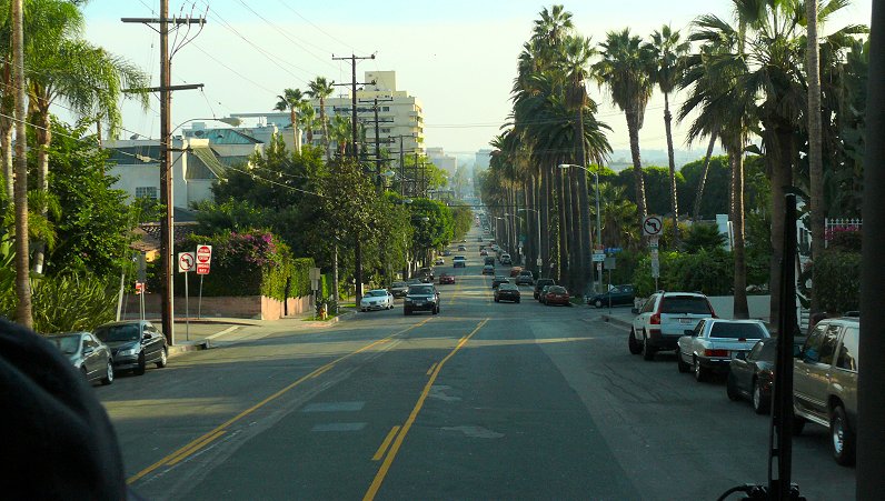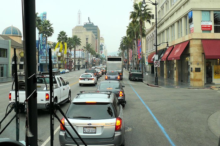 Bij het binnenkomen in Hollywood zien we door het slechte zicht helaas in de heuvels niet het bord staan met daarop de naam Hollywood. Jammer, want het is zo'n specifiek beeld.