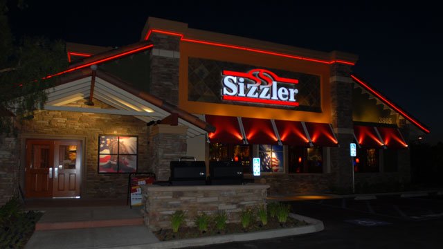 We frissen ons snel op en gaan eten bij Sizzler, net zoals