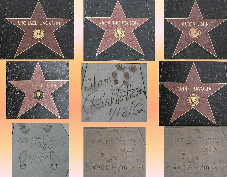 Zo kon het gebeuren dat iemand als Gene Autry niet minder dan 4 sterren kreeg, want hij was actief op de televisie, op de radio, in de muziek en in de film. Wie een ster in de Walk of Fame wil, moet daar overigens behoorlijk voor in de buidel tasten: het tarief is ongeveer $ 5.000. Van één 'ster' heeft geen mens enig idee wie of wat hij is of was: Maurice Diller. Wie bereid is elke eerste zaterdag van de maand met koperpoets naar zijn of haar held of heldin uit te rukken, mag de betreffende ster de zijne of de hare noemen. Er zijn sterren waarvoor wachtlijsten bestaan! Jammer is, dat een aantal flink tegels is gebarsten. Ter hoogte van Grauman's Chinese Theatre liggen enkele tientallen betonnen tegels met de hand- en voetafdrukken, die diverse beroemdheden in het nog natte cement hebben achtergelaten. Een persoonlijke boodschap daarbij ontbreekt niet. Iedereen zoekt natuurlijk naar zijn of haar eigen favoriet. We zien de tegel van Marilyn Monroe, Clint Eastwood, Bob Hope, Eddy Murphy, Sophia Loren, Al Jolson, Sidney Poitier en Steven Spielburg om er maar een paar te noemen.