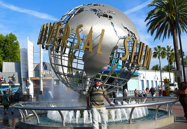 Veel grote films zijn er gemaakt, zoals the Hulk, Jurassic Parc, Terminator, Psycho, Shrek en War of the Worlds. De opnames voor de Jay Leno show worden er ook gemaakt. Bij de ingang staat de bekende Universal wereldbol. In de Universal Studios maken we eerst met een treintje de Studio Tour. Die duurt 45 minuten. Hans heeft aangeraden in de 2e of 3e wagen te gaan zitten. Dan kan je namelijk alles het beste zien.