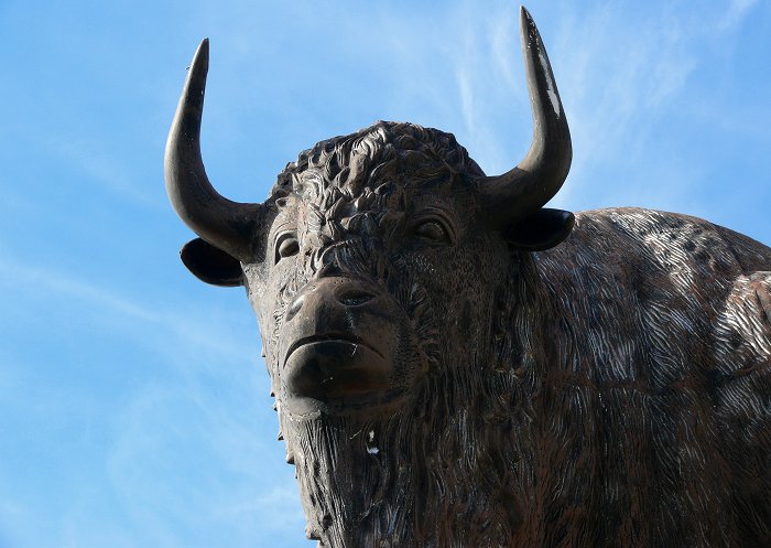 het land te bebouwen. We zien ook een bronzen bison.