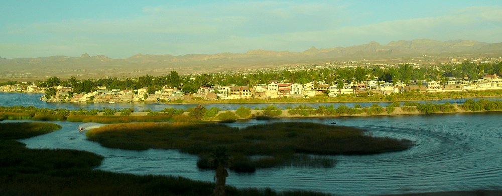 Langs de Colorado River rijden we naar Laughlin. Laughlin ligt in het uiterste zuiden van Nevada, aan de grens met Californië en Arizona. Bij de volkstelling in 2000 werd het aantal inwoners vastgesteld op 7.076. Laughlin heeft een oppervlakte van 231,8 km2, waarvan 228,2 km2 land en 3,6 km2 water. Laughlin bestaat eigenlijk alleen uit enorme gokhotels, waaronder één in de vorm van een grote radarboot.