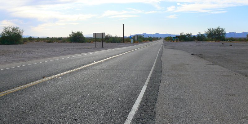 over de Interstate 95 richting Needless. Het is nog steeds warm. Ruim boven