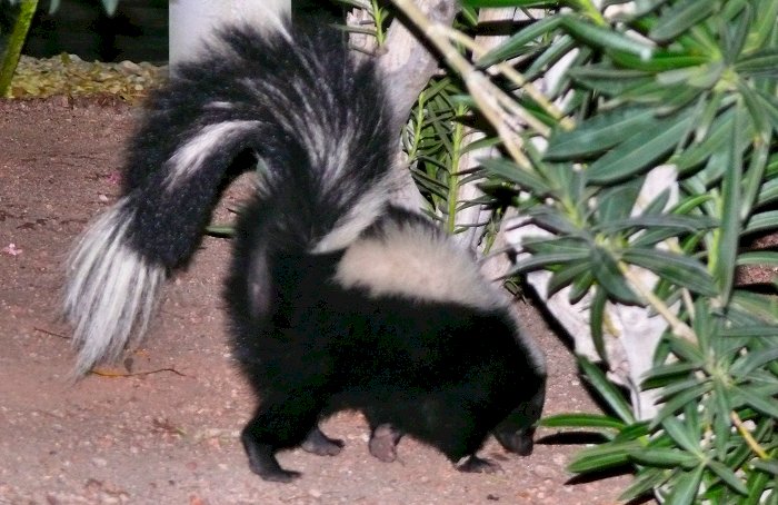 We lopen nog even rond in het casino en gaan dan naar buiten. Op de parkeerplaats zien we een zwart-wit diertje rondscharrelen. Even kijken wat het is. Automobilisten waarschuwen ons niet te dichtbij te komen. We denken natuurlijk dat dat wordt gezegd omdat het diertje kan aanvallen. Maar nee, het gaat om een skunk, een stinkdier, en als die zich bedreigd voelt, spuit hij -na eerst te hebben gewaarschuwd overigens- de inhoud van zijn extreem onaangenaam ruikende anaalklieren tot op 3 m ver recht in je gezicht.