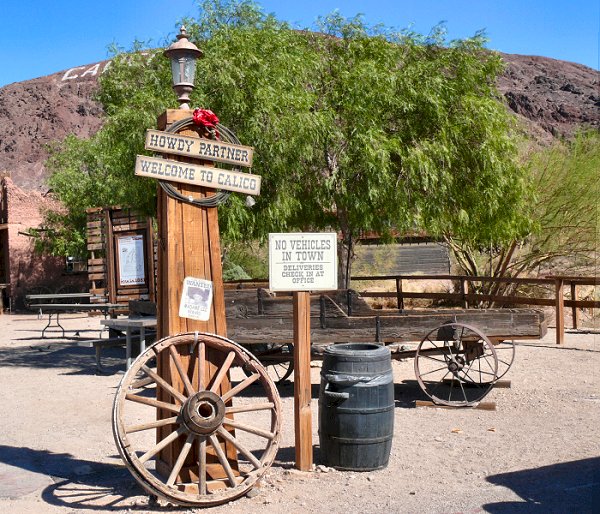 Aan de Interstate 15 tussen Las Vegas en San Diego ligt vlak vóór de stad Barstow aan de rand van de Mojave Desert Calico Ghost Town. In deze omgeving zijn nog veel ghost towns te vinden, maar ze zijn allemaal vervallen, op een na: Calico Ghost Town. Dat plaatsje is in 1951 helemaal gerestaureerd. Barstow is de plaats waar de noord-zuid goederenspoorlijn de oost-west lijn kruist. Eerder al passeerden we de staatsgrens tussen Nevada en Californië. Bij die grensoverschrijding was een Agricultural Inspection. In verband met de uitvoer van Californisch fruit naar Japan wil Californië beslist voorkomen dat er vanuit andere staten fruitvliegjes binnenkomen.