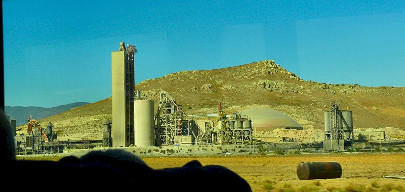 We komen wéér langs een cementfabriek. Die werkt op zonne-energie, maar wordt gekoeld