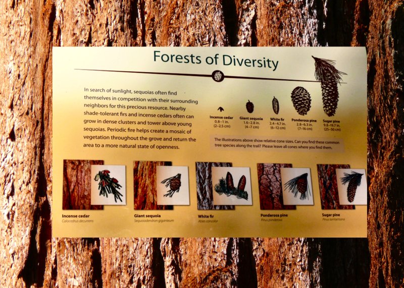 om de vele sequoia bomen. Er staan in dit gebied heel veel sequoias. We zien er