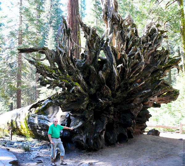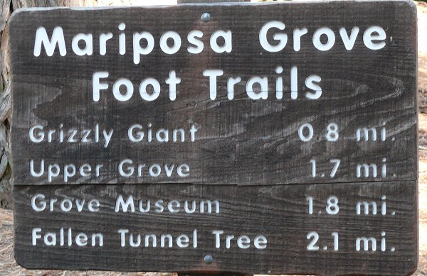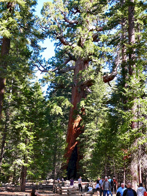 We gaan naar Mariposa Grove of Giant Sequoias. Dat is een gevolg van de keuze waarvoor Hans ons heeft gesteld: òf we blijven volgens het programma in het dal òf -anders dan het programma- we gaan naar de sequoiabomen of mammoetbomen, de dikste bomen in de wereld. In het dal hebben we geen zicht op de watervallen, want die staan nu droog. En die watervallen zijn juist het meest interessant. Hans geeft wél aan, dat als er maar een reiziger (van de 41) is die het programma wil volgen, dat ook zal gebeuren. Een meerderheid van stemmen geldt dus beslist niet. Unaniem wordt besloten naar de sequoias te gaan.