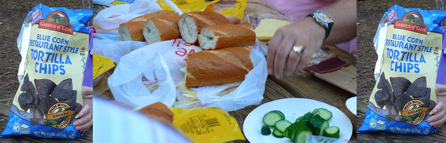 Met de shuttlebus gaan we weer terug naar de parkeerplaats bij het Wawona Hotel. Daar staat een aantal tafels met banken. Een geschikte plek dus voor onze 3e picknick. En ook nu is het weer bijzonder gezellig en het smaakt bovendien prima.
