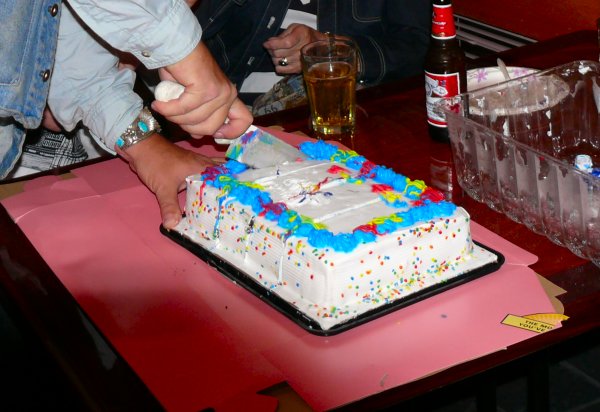 gezamenlijk in het hotel -zelfbetaalde- taart eten. Een leuk initiatief!