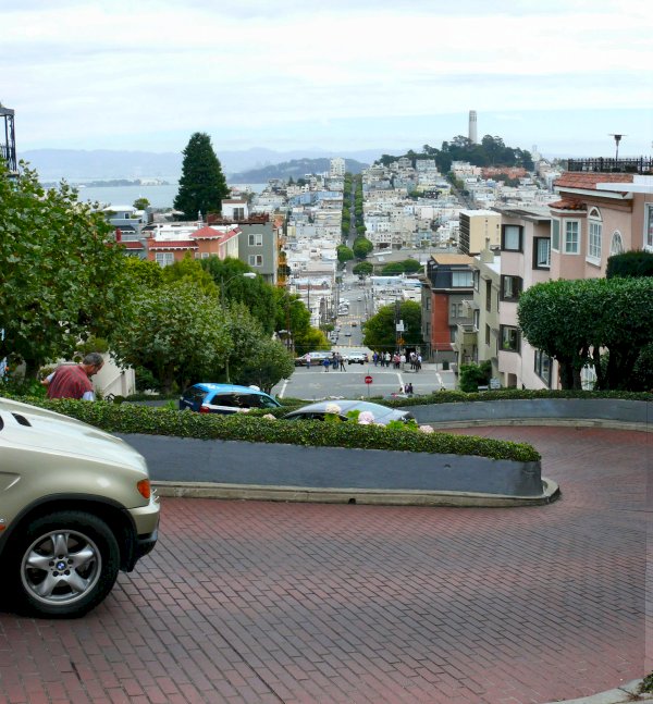 Lombard Street is een oost-west straat, die bekend staat als de meest bochtige