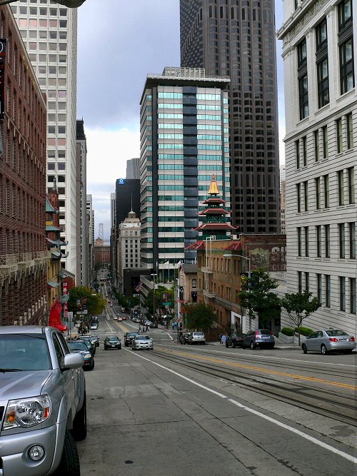 Het Wells Fargo History Museum is in het weekend gesloten. Jammer. Daarom gaan we met de Cable Car naar Chinatown. De loopafstanden zijn weliswaar niet zo erg groot, maar de straten zijn wel héél erg steil.