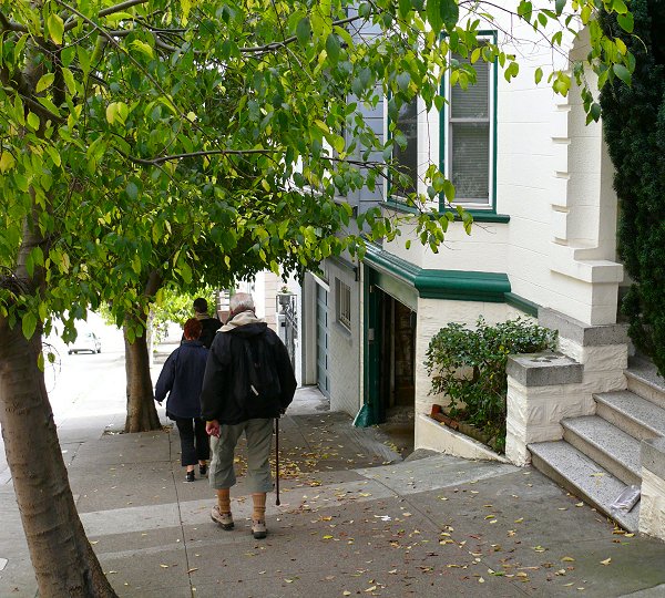 gaat helemaal tot aan de top van Lombard Street. De straat komt voor in een