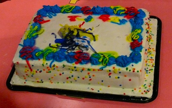 Er is inderdaad nog taart over. Waarschijnlijk komt dat omdat hij enigszins blauw afgeeft aan lippen, tanden en tong. Dat hebben wij binnen de kortste keren ook, want hij smáákt verdraaid lekker.