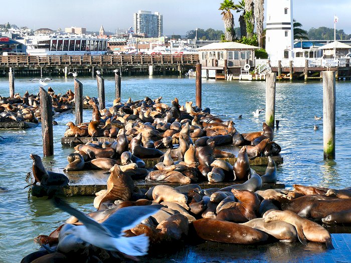 Hy brengt ons weg en zet ons na 21 miles af bij Fisherman's Wharf voor Pier 39. We nemen